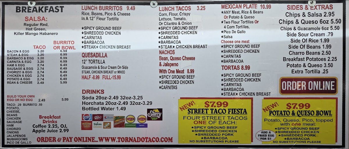 From freshly prepared ingredients to friendly service, Tornado Taco provides a fulfilling dining experience that caters to both local patrons and adventurous foodies alike. So gather your friends, grab your appetite, and make your way over to Tornado Taco—where every meal is an explosion of flavor waiting to be discovered!