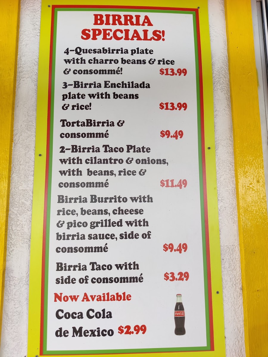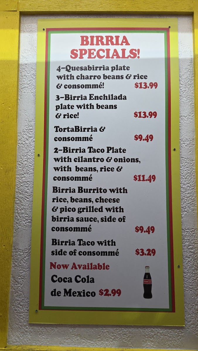 If you’re a fan of tortas, the Mexican Torta at $8.99 or the TortaBirria with Consome for $9.49 will not disappoint. Each bite is packed with freshness and flavor, making it a perfect meal any time of the day. And while the burritos and enchiladas are equally tempting, the real stars are the QuesaBirrias and quesadillas, ensuring there's something for everyone.